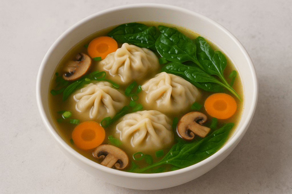 Dumpling-suppe er en skøn og mættende ret, der bringer lidt asiatisk stemning ind i køkkenet. De små dumplings giver suppen fylde og gør den til en hel ret i sig selv. Den er varmende og perfekt på kølige dage, hvor du har lyst til noget både let og fyldigt på samme tid. Suppen kan varieres med forskellige grøntsager, og dumplings kan fyldes med kød, grønt eller en kombination.